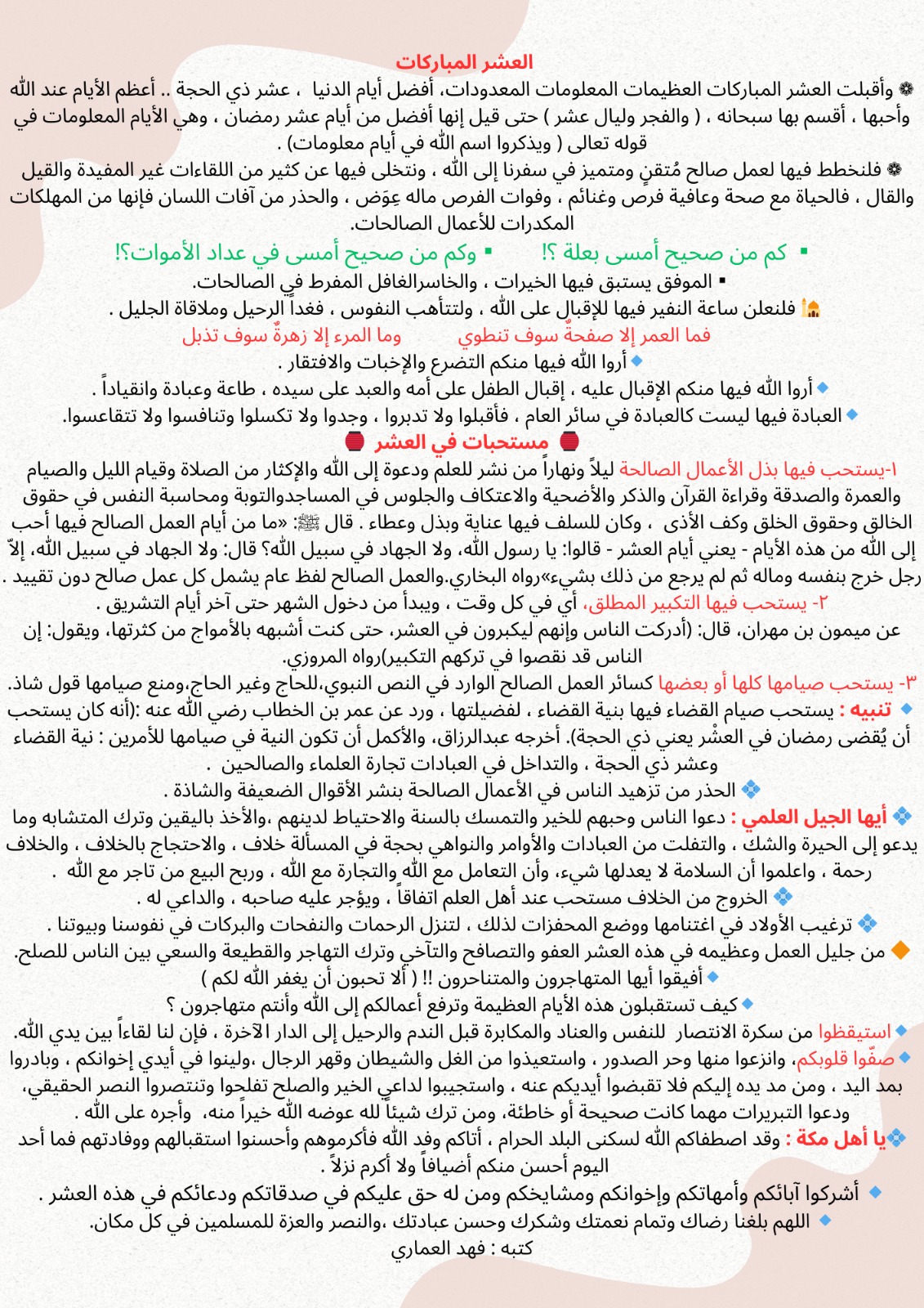 تصميم نافع يحتوى على فضل العشر من ذي الحجة.