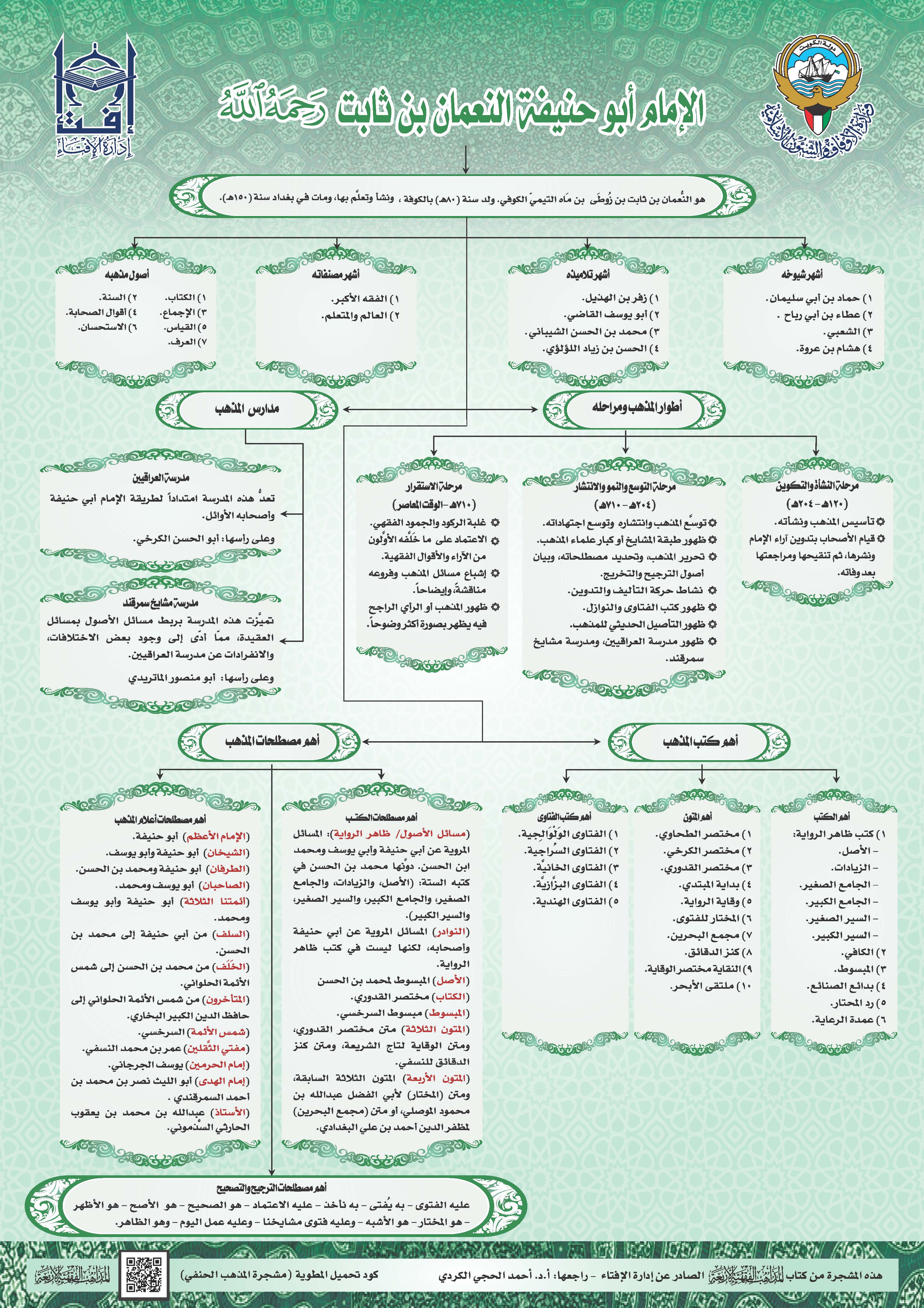 بوستر متميز من إعداد وحدة البحث العلمي بإدارة الإفتاء الكويتية يحتوي على تشجير يبين أطوار المذهب الحنفي، ومراحله مع بيان أبرز مدارسه، وكتبه، ومصطلحاته.