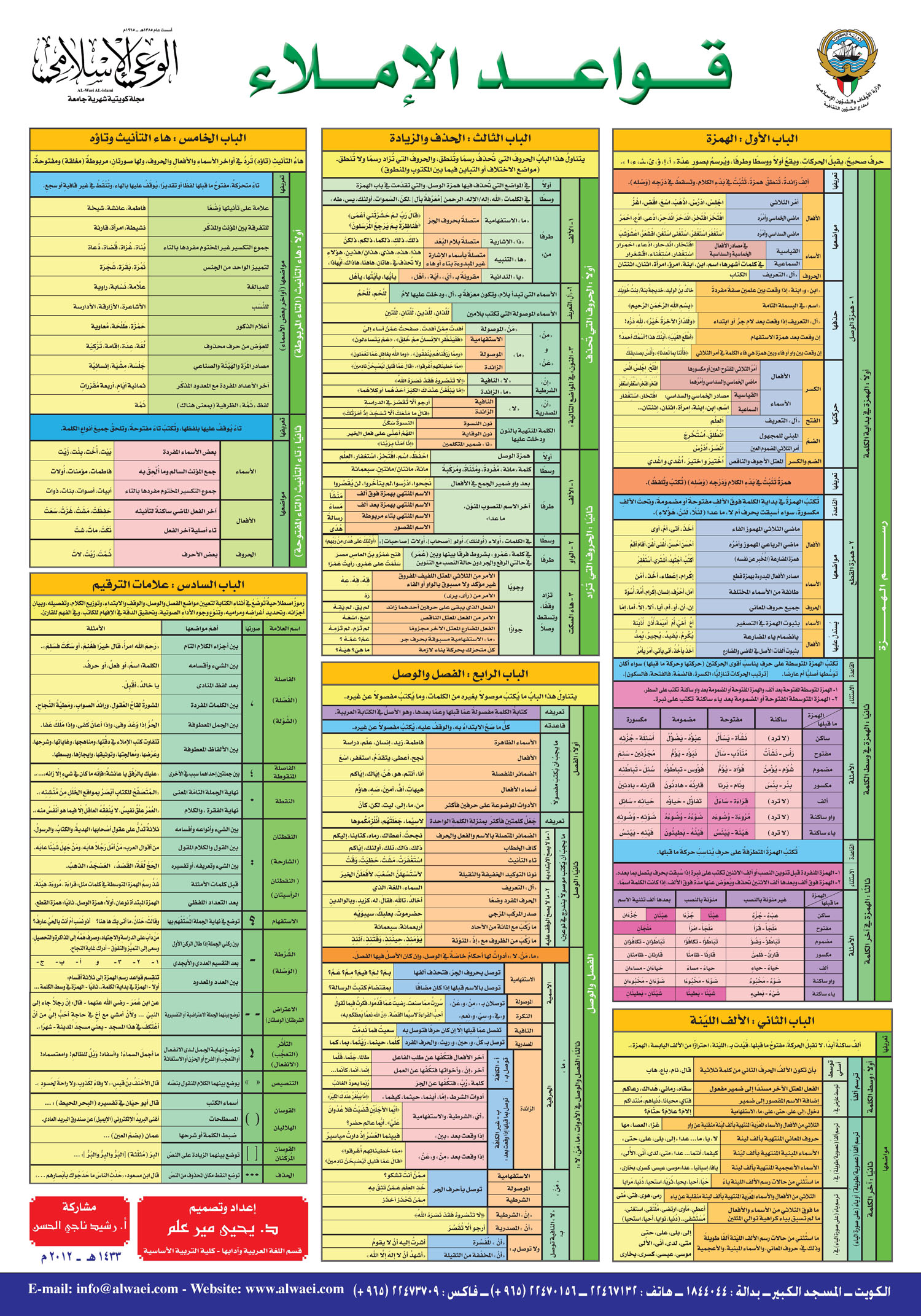 قواعد الإملاء : بوستر متميز من إعداد وتصميم، الدكتور: يحيى مير علم - أثابه الله - احتوى على جدول، ورسم توضيحي يبين قواعد الإملاء.
