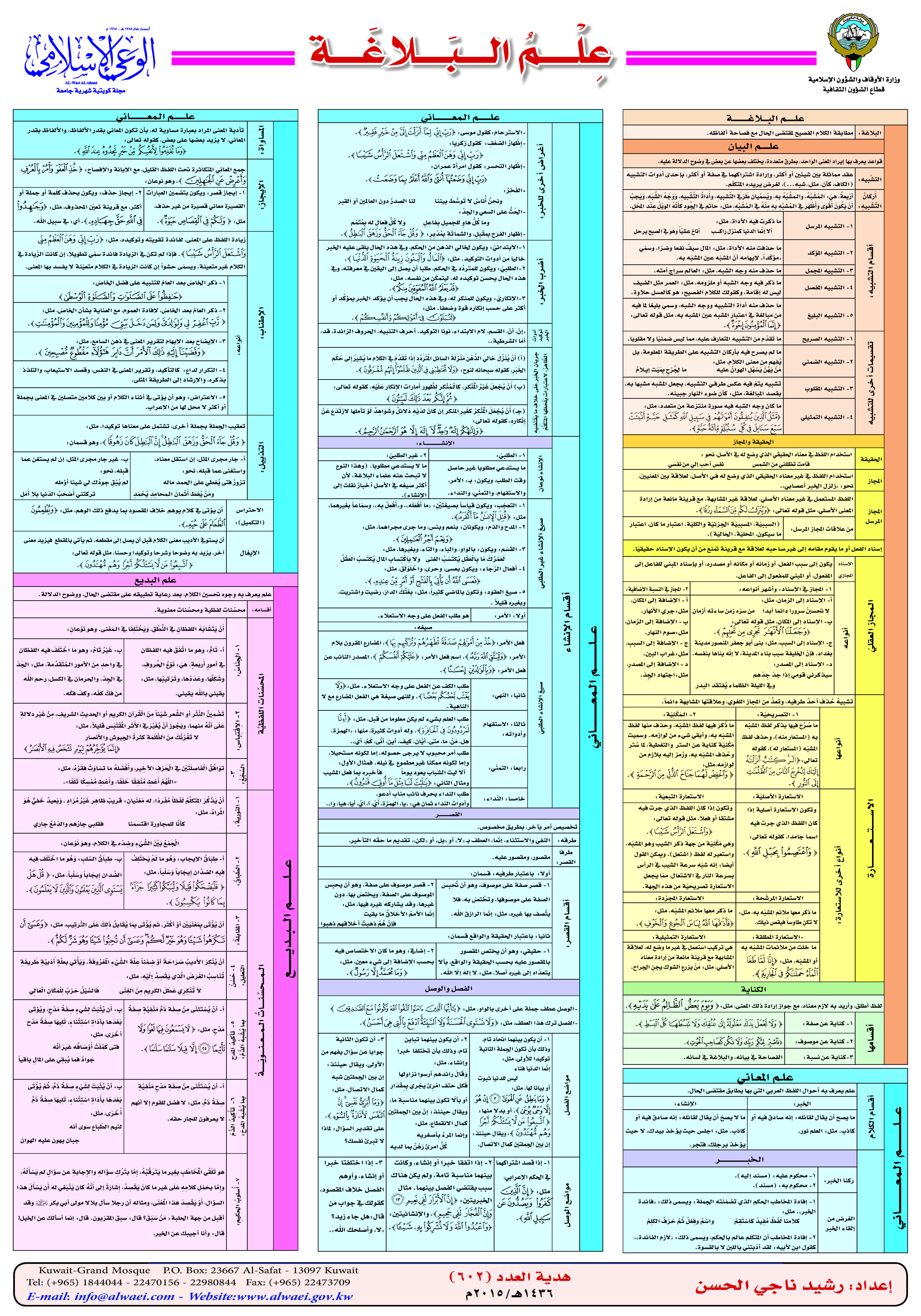 علم البلاغة : بوستر متميز من إعداد: رشيد ناجي الحسن - أثابه الله - احتوى على جدول، ورسم توضيحي يبين مسائل علم البلاغة باختصار.