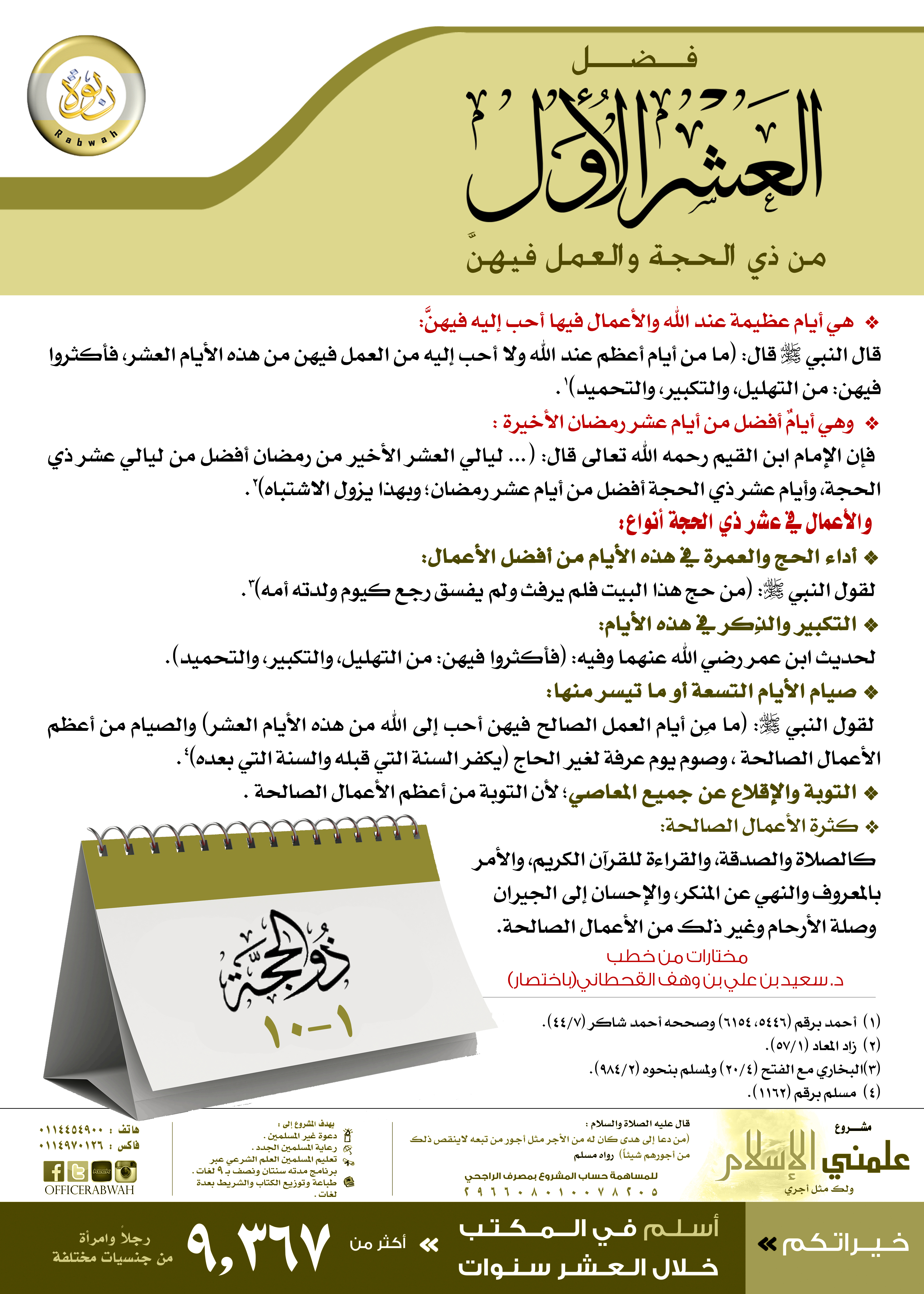بوستر يُبيِّن بعض فضائل العشر الأول من ذي الحجة والعمل فيهن.