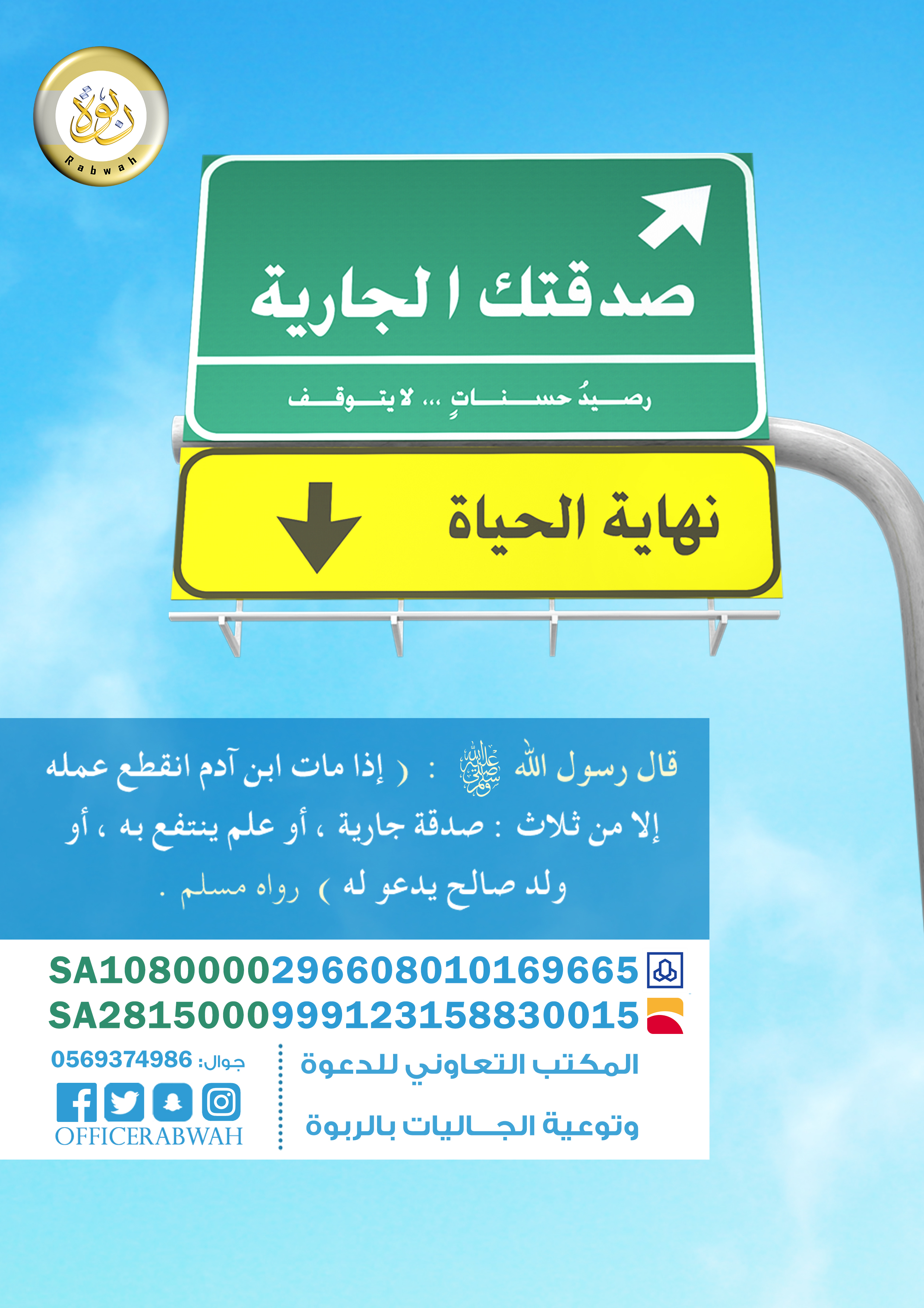 مشروع صدقتك الجارية: مشروع تابع للمكتب التعاوني للدعوة وتوعية الجاليات بالربوة، يهدف إلى المساهمة إلى عمل صدقة جارية لتكون عونًا للعبد على مرضاة الله - عز وجل -.
