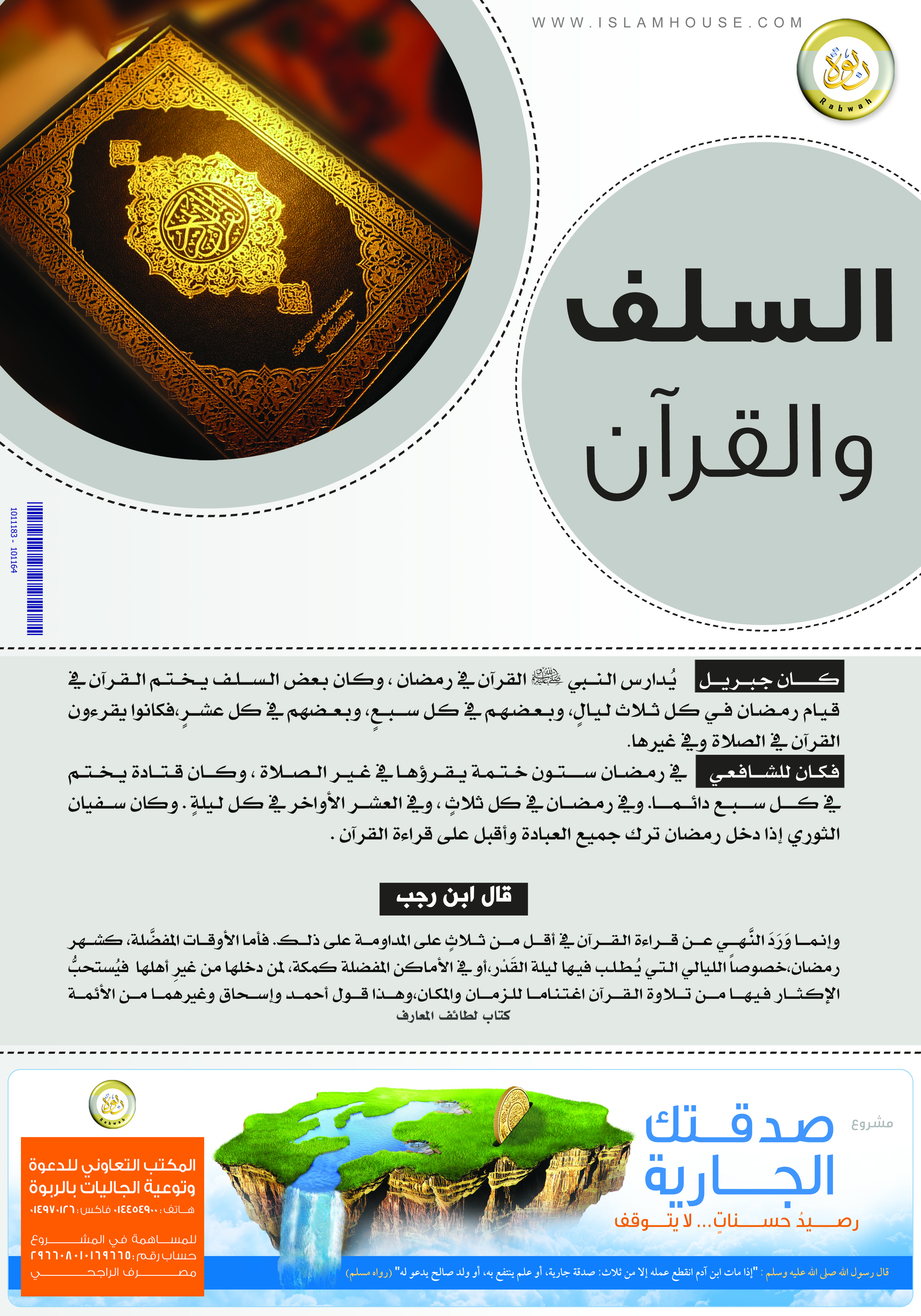 بوستر يبين حال النبي - صلى الله عليه وسلم - وكذلك أحوال بعض السلف مع القرآن الكريم.