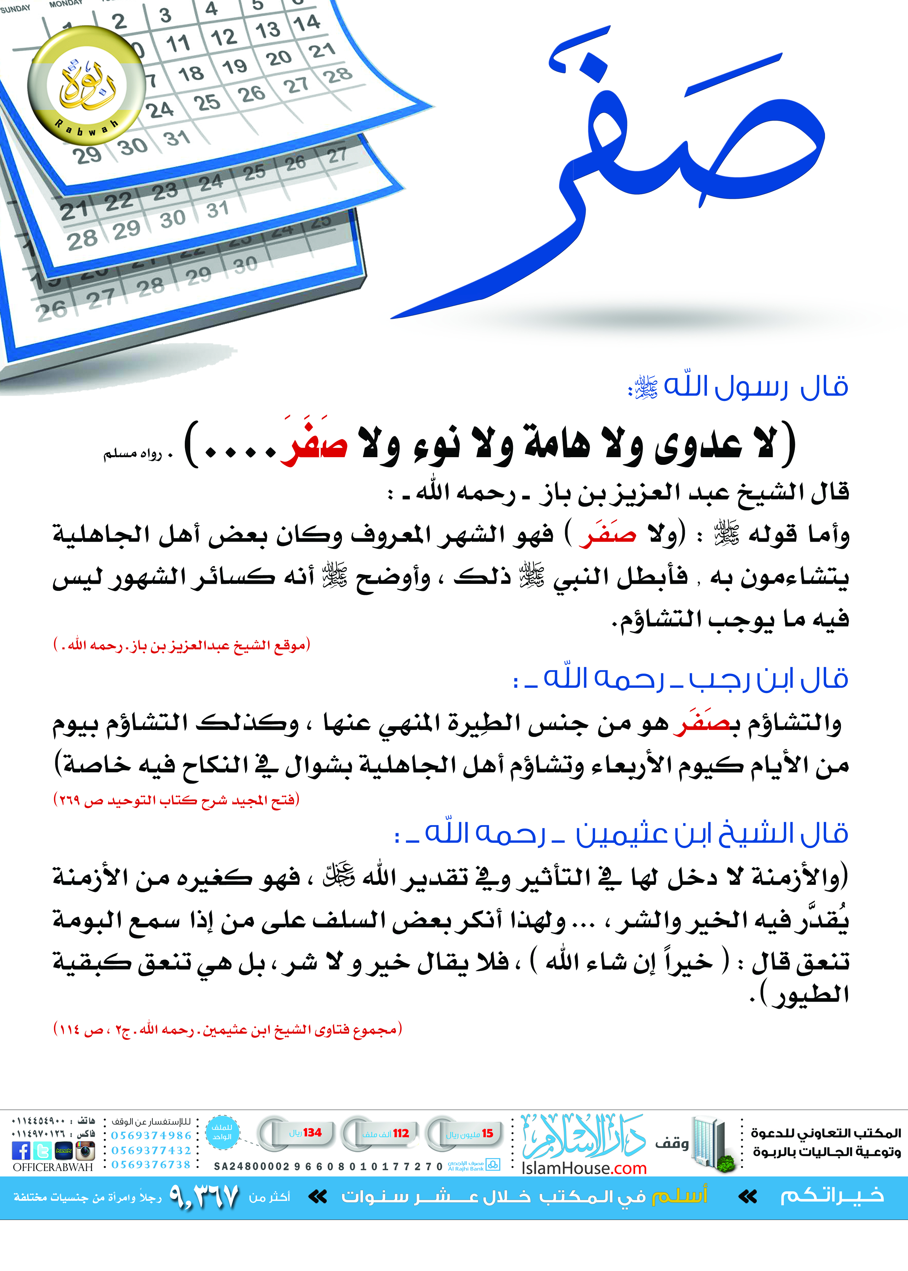 بوستر يحتوي على أقوال بعض العلماء عن التشاؤم بشهر صفر.