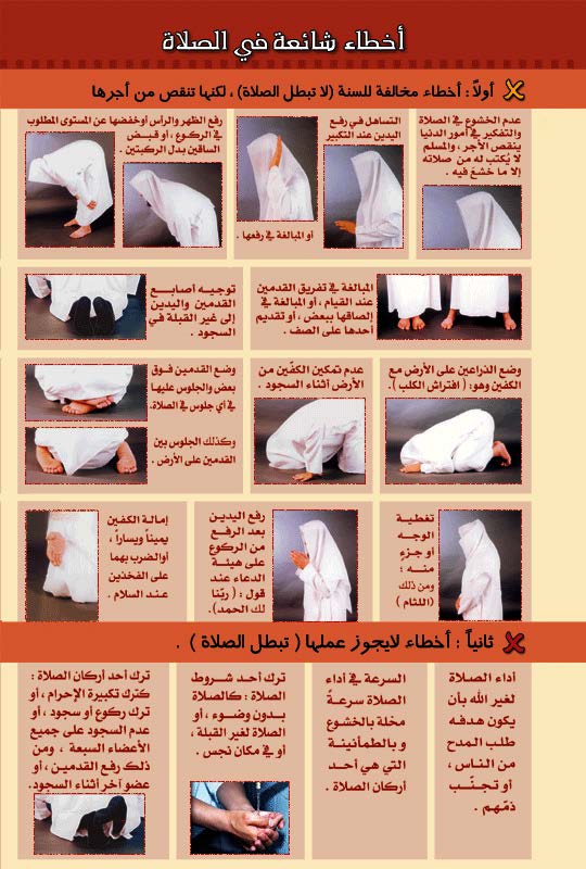 تصميم يحتوي على بيان بعض الأخطاء الشائعة في الصلاة.