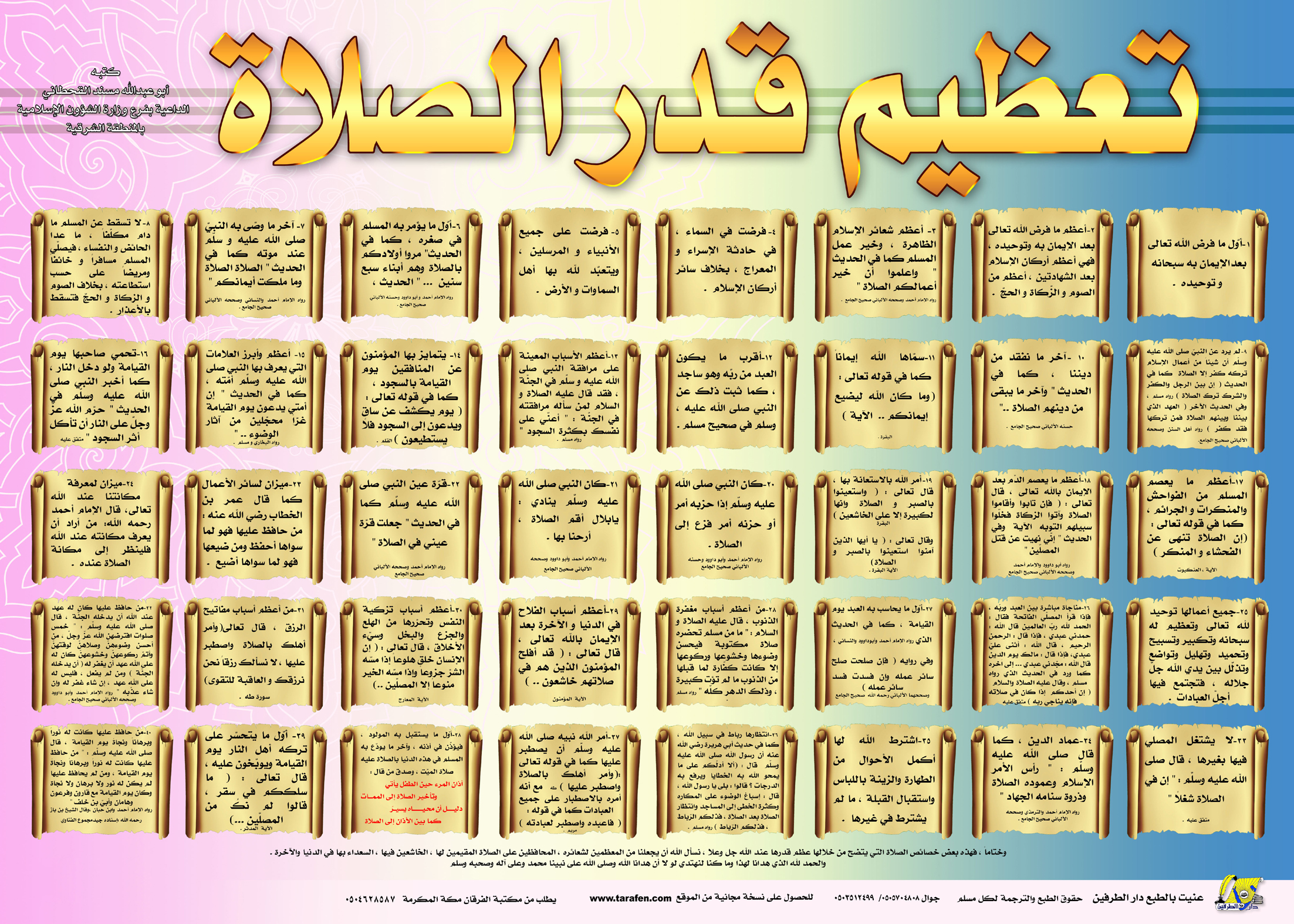 بوستر يحتوي على بعض خصائص الصلاة التي يتضح من خلالها عظم قدرها عند الله - عز وجل -.