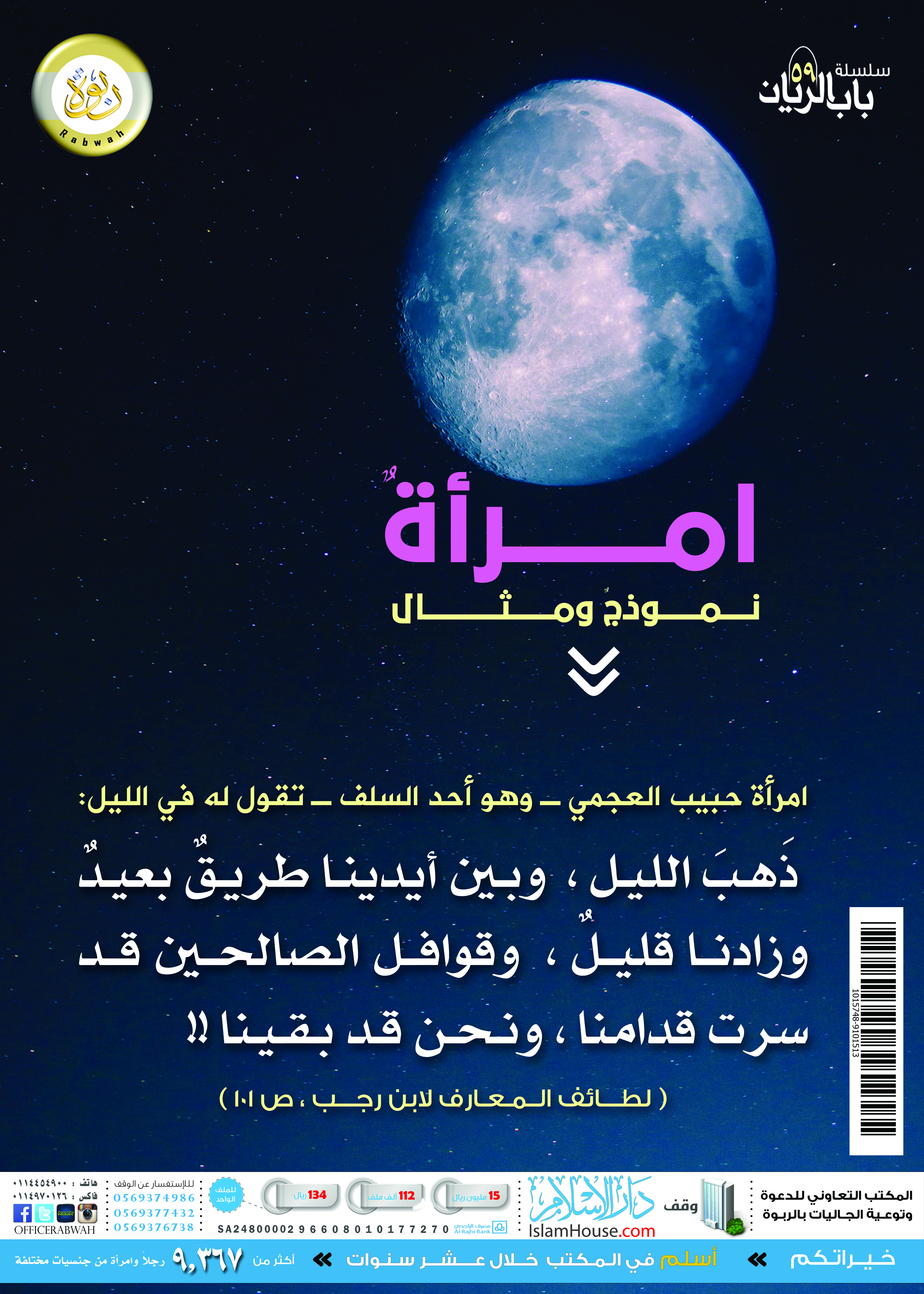كانت امرأة حبيب العجمي - وهو أحد السلف - تقول له في الليل: ذهب الليل، وبين أيدينا طريق بعيد، وزادنا قليل، وقوافل الصالحين قد سرت قدامنا، ونحن قد بقينا.
