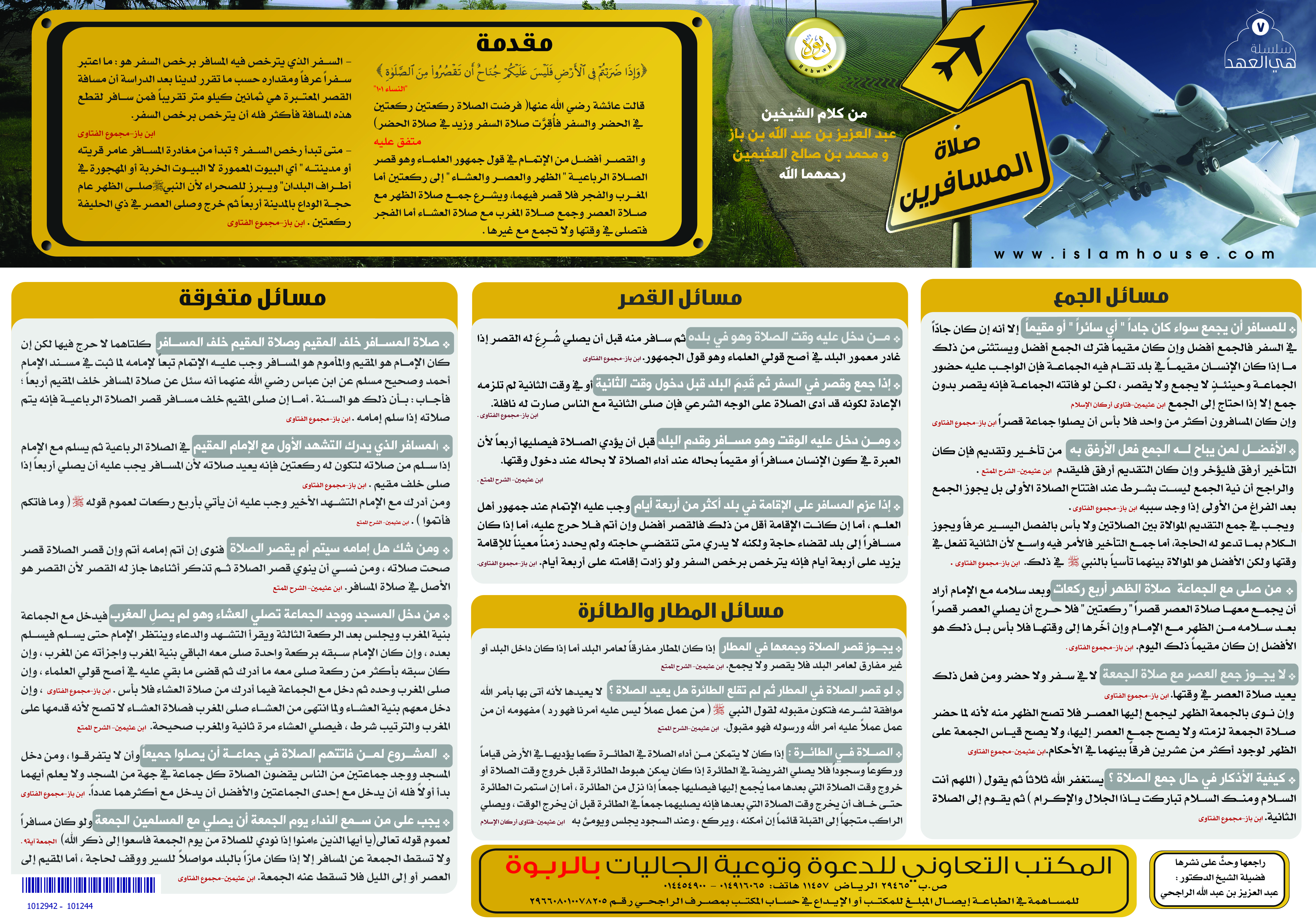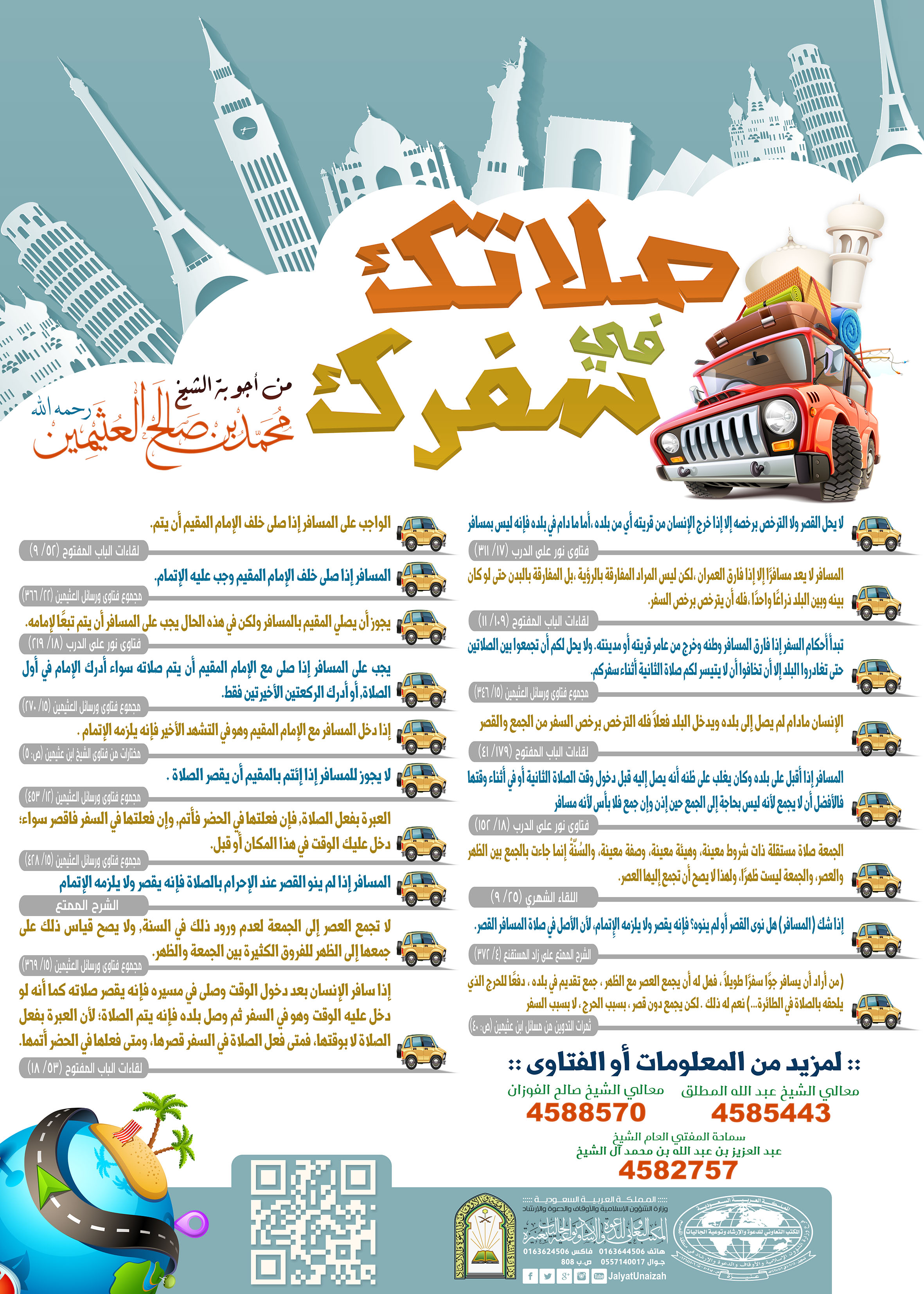 صلاة المسافر : بوسترات متميزة تحتوي على أحكام الصلاة في السفر ، وأحكام الجمع والقصر في السفر ، وغيرها من الأحكام، ويمكن تصفحها دون تحميل، ونشرها عبر المواقع المختلفة.
