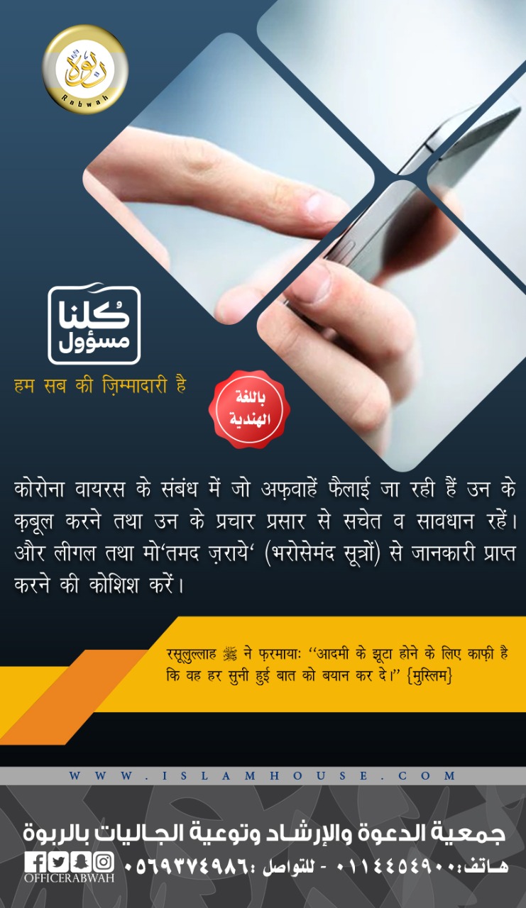 शासक की बात मानना जरूरी है, और उन्हों ने रात में निकलने से मना किया हुआ है। घर में अवस्थान करना वतन की हिफाजत है। हर सुनी हुई बात का प्रचार करना झूटा होने के लिए काफी है। चिकित्सा विज्ञान श्रेष्ठ विज्ञानों में से है। किसी को नुकसान पहूँचाना हर हाल में नाजायज है।