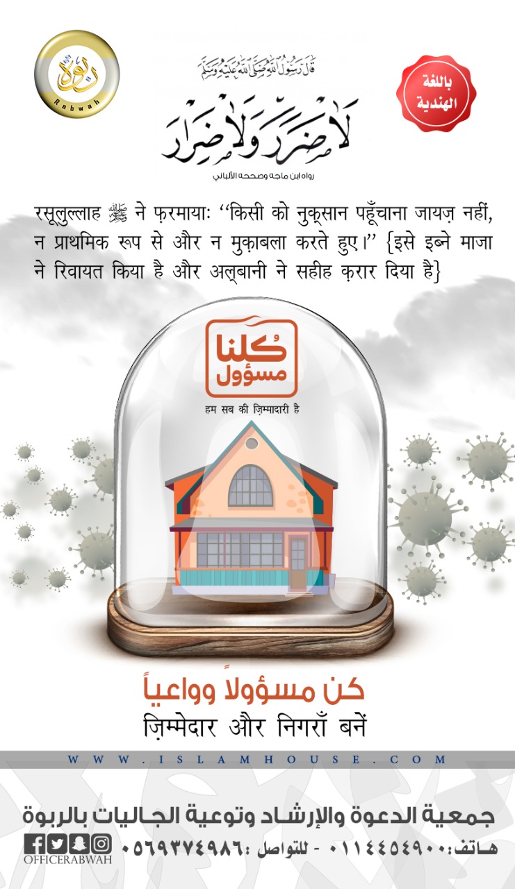 1- शासक का निर्देश मानना। 2- घर में अवस्थान करना। 3- अफवाहों से दूर रहना। 4- चिकित्सा विभाग की अहमियत। 5- नुकसान पहूँचाना हराम है।