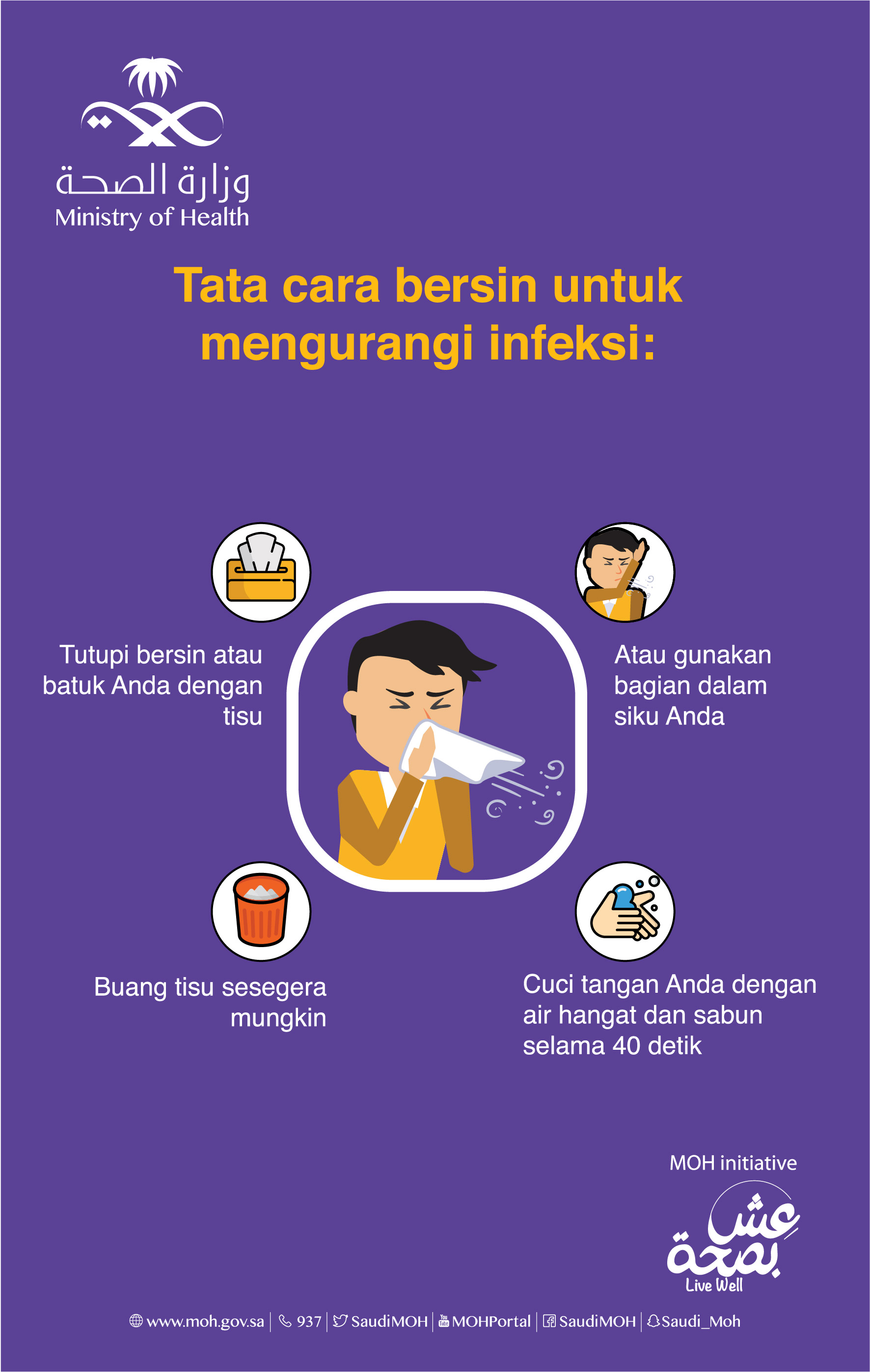 dropdown-icon-5 Untuk melindungi Anda dari coronavirus baru, pastikan untuk: menutupi mulut saat batuk atau bersin di siku.