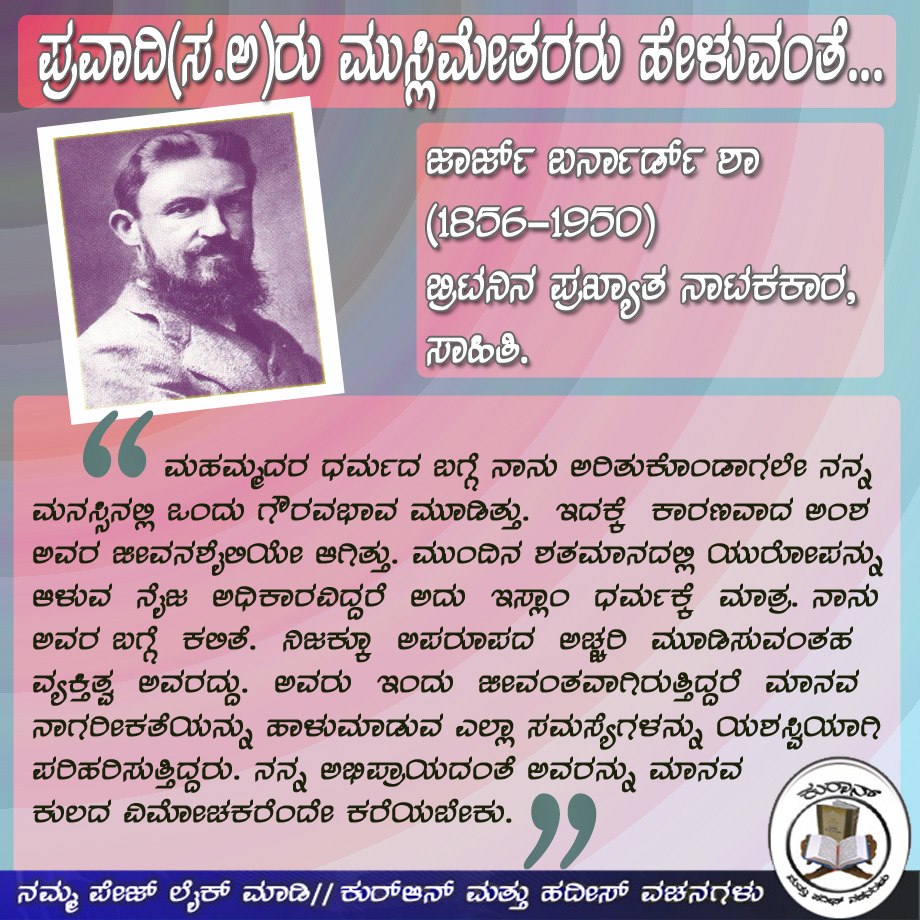 dropdown-icon-5 ಪ್ರವಾದಿಯವರ ಕುರಿತು ಮುಸ್ಲಿಮೇತರರ ನುಡಿ: ಜಾರ್ಜ್ ಬರ್ನಾಡ್ ಷಾ
